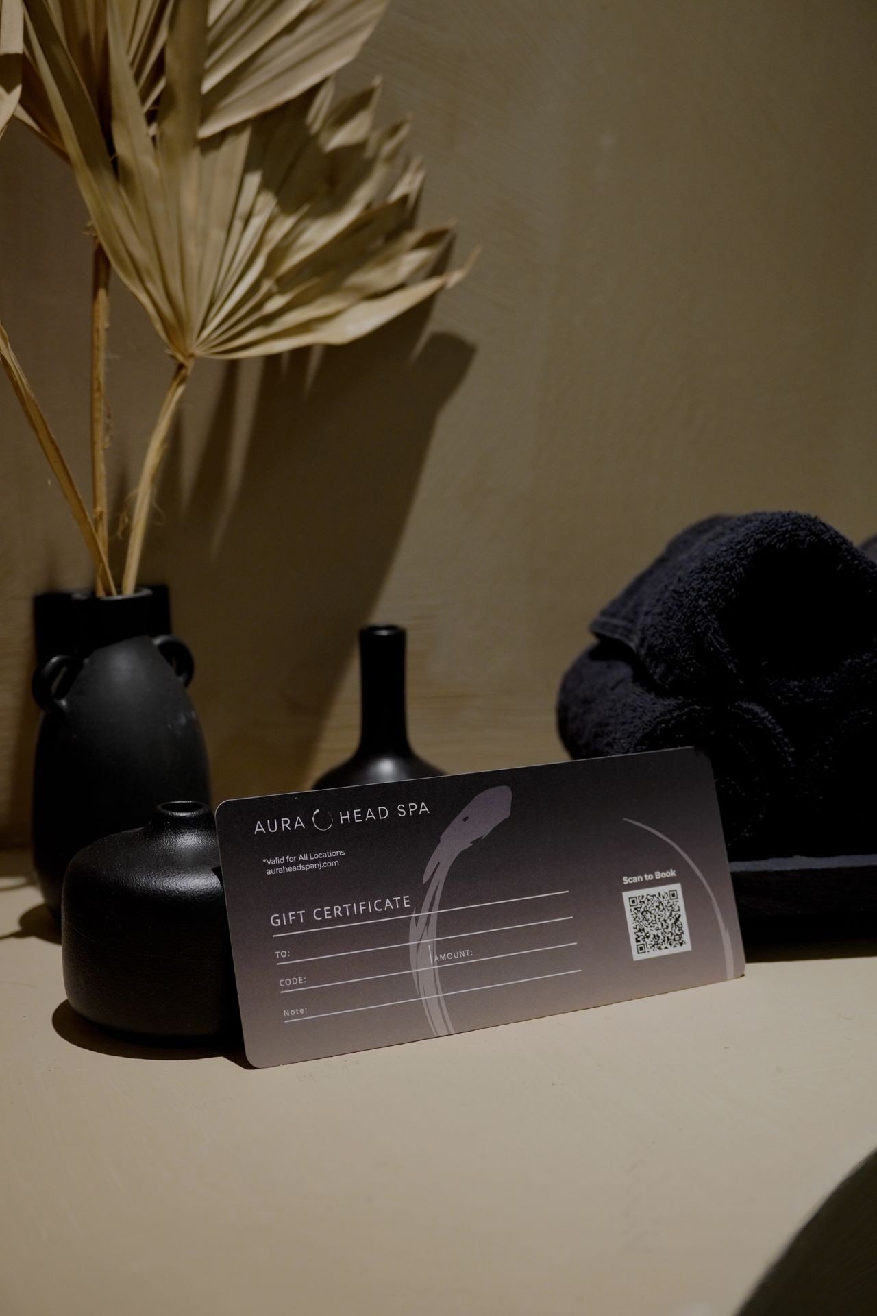 • Physical Gift Cards — available for in-store purchase at any Aura Head Spa location